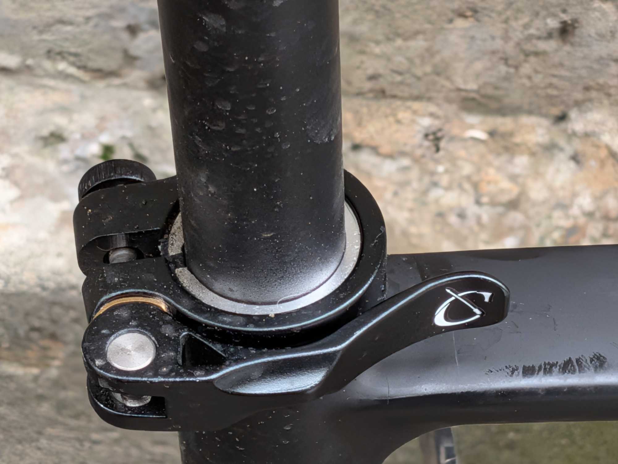 また、サドルの締め付けトルクは15Nmなのだが、ギヤ歯付きでないので滑るため、渾身の力80Nmくらいで締め付ける必要があるため、レールがカーボンのサドルは選択できない。