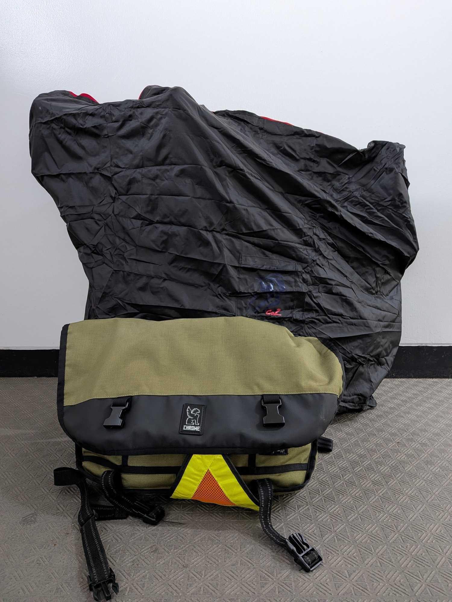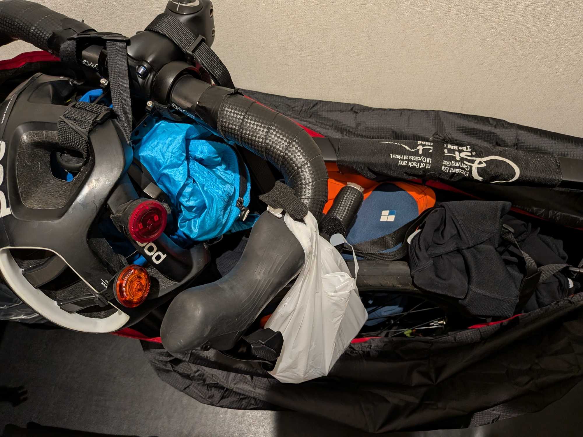 自転車に括り付けて、可能な限り輪行バッグ内に収納した。